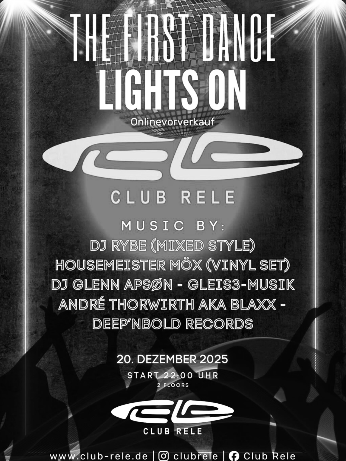 Dieses Ticket berechtigt zum einmaligen Eintritt zur Veranstaltung âThe First Dance â Lights Onâ am 20.12.2025 im Club Rele.